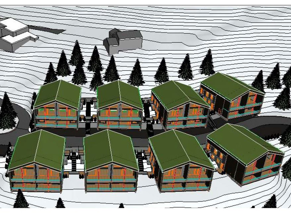 Leilighetskomplekset består av 8 bygninger (4 leiligheter i hver bygning) med en armert betongkonstruksjon og en ramme av tre og stål.